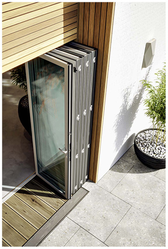 Die im Boden eingelassene Schiene bei den Faltsystemen sowie die Deckenführung bei den H-S-W-Systemen gewährleistet einen schwellenlosen, barrierefreien Geschäftseingang, so der Anbieter.