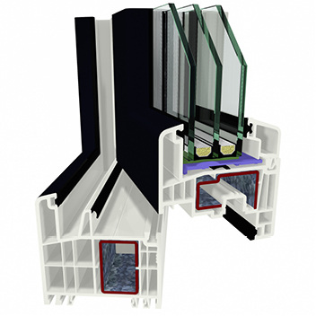 Das Mitteldichtungssystem mit drei Dichtungsebenen und seinen zusätzlichen Dämmzonen zur optionalen Aufnahme von Isolierblöcken kann einen U f -Wert von 0,87 W/(m²K) erreichen. Die Passivhauseignung wird durch den Einsatz zusätzlicher Isolierblöcke bei einem U f -Wert von 0,79 W/(m²K) erreicht. Die Falzgrundgeometrie ermöglicht den optionalen Einsatz der additiven Klebetechnik und für besondere Designanforderungen steht ein grauer Grundkörper zur Verfügung. Wie beim Schiebesystem lässt es sich farblich mit den außen liegenden Deckschalen, den Metallic-Farben AtomotiveFinish und durch ein entsprechendes Foliensortiment gestalten.