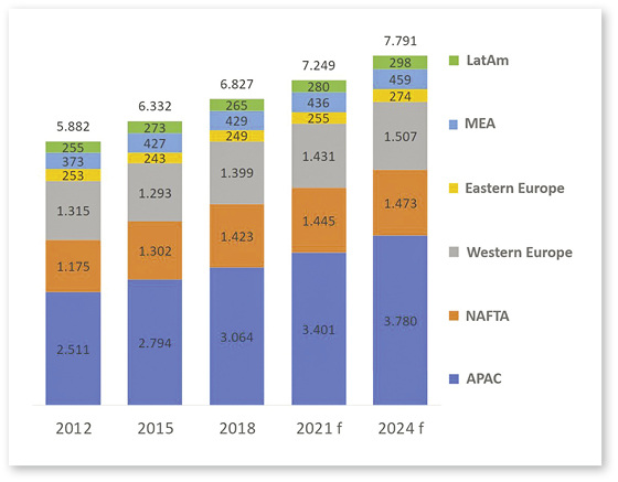 Diese Entwicklung hat zwei Facetten: Von 2012 bis 2018 ist das Bauvolumen in Asien um über 500 Mrd. Euro gewachsen. Dieser Zuwachs ist so groß, wie das gesamte Bauvolumen in Südamerika und Osteuropa zusammen. Bis 2024 gehen wir davon aus, dass der Zuwachs in einer ähnlichen Größenordnung liegen wird. Ein starkes Bevölkerungswachstum und Urbanisierungsprozesse steigern den Wohnraumbedarf, sodass die Bauinvestitionen Jahr für Jahr steigen. Dabei geht die positive Entwicklung in Wohnbau, Infrastruktur und Nichtwohnbau stets miteinander einher, sodass alle Sektoren profitieren.