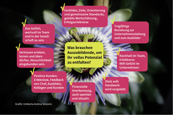 Auszubildende wollen gefördert und gefordert werden. Dazu braucht es einen verlässlichen Rahmen, definierte Standards zu Arbeitsabläufen, Arbeitsweisen und Verhaltensweisen.