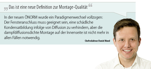 _ Der Fenstereinbau ist keine triviale Bauaufgabe, sondern erfordert von allen Beteiligten hohes Know-how und die Bereitschaft zur gewerkeübergreifenden Zusammenarbeit. Darüber hinaus sind hohe bauphysikalische Anforderungen zu erfüllen und die Notwendigkeit der exakten Verarbeitung der Materialien ist gegeben. Diese Problematik führt immer wieder zu Fragen und Diskussionen bei der Planung und Ausführung des Fenstereinbaues. Die unterschiedlichen Sichtweisen einzelner Gewerkebeteiligter spiegelten sich auch im Normenausschuss wider: Dort waren 50 Personen aus den Fachbereichen Baumeister/Zimmermeister, Fensterindustrie/-gewerbe, Montageunternehmen, Fassaden/WDVS-Hersteller, Putzer/Trockenbauer, Spengler/Abdichter und Sachverständige/Prüfstellen sowie die gesamte Zulieferindustrie vertreten. Hier alle Interessen auf einen Nenner zu bringen, bedurfte Zeit. Nach fünf Jahren Bearbeitungszeitraum ist die neue ÖNORM B 5320 „Einbau von Fenster und Türen in Wänden“ nun am 15.3.2015 neu erschienen.