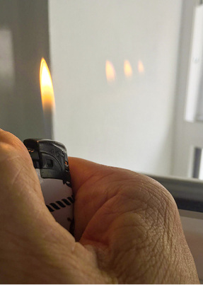 Erstaunlich, was der Feuerzeugtest verrät: Wenn es um den Austausch alter Fenster geht, können Sie Ihren Kunden mit einem Feuerzeug einfach demonstrieren, wie viele Scheiben und Beschichtungen das Fenster enthält. Halten Sie das Feuerzeug vor die Scheibe und beobachten Sie die Reflexionen der Flamme im Glas. Jede Oberfläche der im Fenster verbauten Scheibe zeigt eine Spiegelung der Flamme. Abweichende Einfärbungen weisen auf beschichtetes Glas hin. Das sind dann Wärmeschutzscheiben, wie sie ab etwa 1990 zum Einsatz gekommen sind.