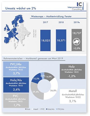 Der Umsatz des Fenstermarktes in Westeuropa ist im letzten Jahr um 2,0 % gestiegen. Der Absatz der Branche konnte um 1,5 % zulegen, wie eine Studie von Interconnection Consulting zeigt.