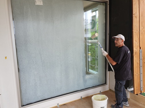 Speziell während der Bauzeit, Montage und dem Transport müssen empfindliche Oberflächen temporär vor Kratzern und Schäden geschützt werden.Die Flüssigschutzfolie ist so aufgebaut, dass das Auftragen mit einem Roll- oder Sprühverfahren ähnlich einer Wandfarbe funktioniert. Sie lässt sich auch nach drei Jahren ganz einfach rückstandslos, ohne Einsatz von Reinigungsmitteln, abziehen.