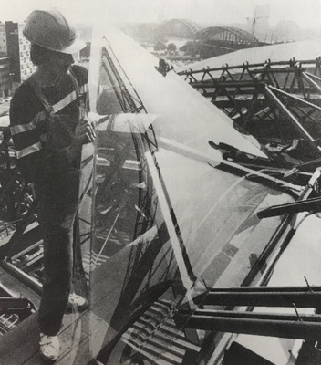 Glasbrüche waren in all den Jahren aufgrund der unterschiedlichen Temperatur-Bewegungen von Glas, Draht und Stahl in unschöner Regelmäßigkeit aufgetreten. Diese Zeiten sollten nun auch mit der neuen Bedachung der Vergangenheit angehören, der neue Werkstoff sich besser auf die Bewegungen der Unterkonstruktion einstellen.