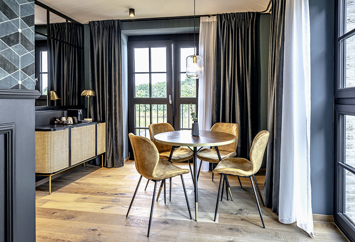 Bei dieser lackveredelten Variante sind die Kunststoff-Oberflächen innen wie außen äußerst reflexionsarm. Hinzu kommt, dass auch die Haptik anders ist als bei herkömmlichen Fenstern. Die Profile vermitteln beim Berühren ein samtiges Gefühl und verstärken hierdurch, gerade im Hotelbau, den hohen qualitativen wie auch gestalterischen Anspruch des Hotelkonzeptes. Für die Umsetzung des Fenster-Gewerkes wurde der Veka-Partner IFP Inno Fenster in Weisen beauftragt. Die besondere Herausforderung: Egal ob Lobby, Restaurant, Bar, Fitnessbereich, Tagungsräume oder eben Hotelzimmer – alle Bereiche mussten optisch eine Einheit bilden, wobei die Elemente funktional den unterschiedlichen Anforderungen je Raumart entsprechen mussten.