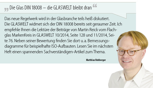 _ Ein neues Regelwerk wirft für diejenigen, die damit arbeiten müssen, neue Fragen auf und bringt so eine gewisse Unsicherheit. Aktuell wird dies leider durch einige wenige Veröffentlichungen verstärkt, die eher Panik schüren als aufzuklären. Aussagen wie „rein rechtlich ist eine DIN anders zu bewerten als bisherige Richtlinien“ oder „jede Scheibe muss künftig statisch bestimmt werden und dies ist künftig nur über eine qualifizierte Software möglich“ sind falsch.