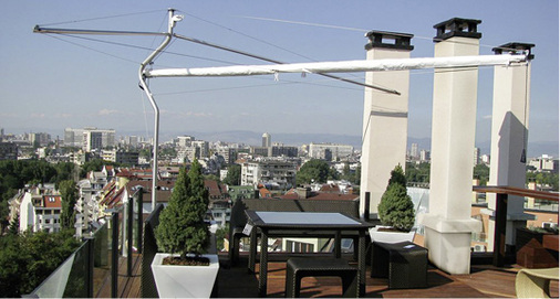 Bis zu 18 m 2 Fläche können sozusagen rund um die Uhr genutzt werden. Ein zusätzlicher Variovolant schützt vor tief stehender Sonne und bietet je nach örtlicher Situation auch zusätzlichen Sicht- und Windschutz. —