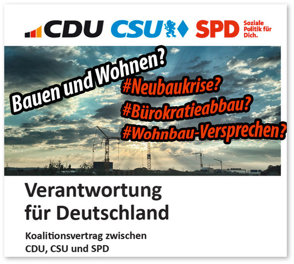Im neuen Koalitionsvertrag steckt einiges drin, was die Unterstützung der Bauwirtschaft angeht. Rahmenbedingungen (Bürokratie, Standards, Planungssicherheit) und Fördermechanismen sollen verbessert werden. GW-Chefredakteur Daniel Mund hat sich das Kapitel „Bauen und Wohnen“ genauer angeschaut und einen kritischen Satz entdeckt.