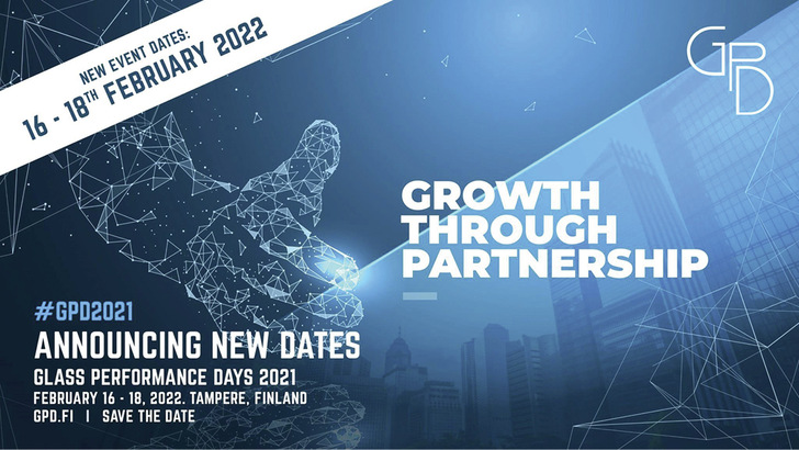 Wie die Veranstalter der Glass Performance Days bekannt geben, werden die GPD, die Im Oktober in Tampere (Finnland) stattfinden sollten, auf das kommende Jahr verschoben. Als neuer Termin ist Februar/März 2022 angepeilt.