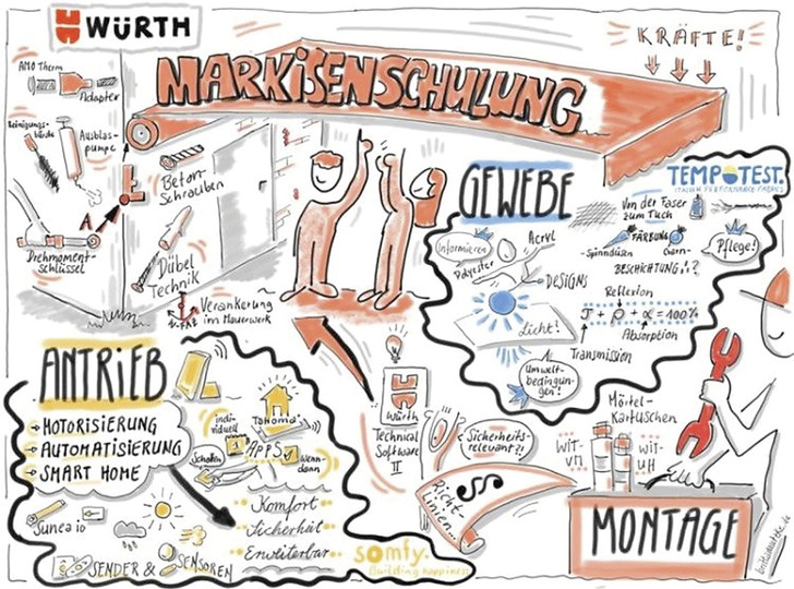 Nach durchweg positivem Feedback und hoher Nachfrage des Schulungsangebotes „markisenschulung.de“, bietet Würth zusammen mit Somfy und Para Ende 2021 wieder Präsenz-Schulungen an. Geballtes Wissen in einem Tagesseminar, ideal für alle Interessierte der Branche findet kompakt in 3 Modulen statt: