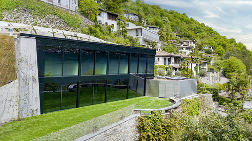 Das Architekturbüro deltaZero aus Lugano-Paradiso, bekannt für seine experimentellen Entwürfe, entwickelte ein Gebäude, das sich durch minimale visuelle Präsenz in die Topografie integriert. Die dunklen, teils reflektierenden Glasflächen fangen Licht, Vegetation und Landschaft ein.