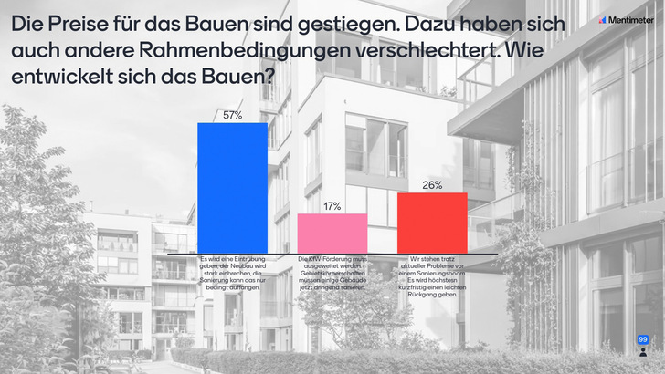 Wir wollten von der Zuhörerschaft unseres Streamingevents (insgesamt über 900 Teilnehmer) wissen, wie sie die Situation am Bau einschätzen angesichts der veränderten Rahmenbedingungen