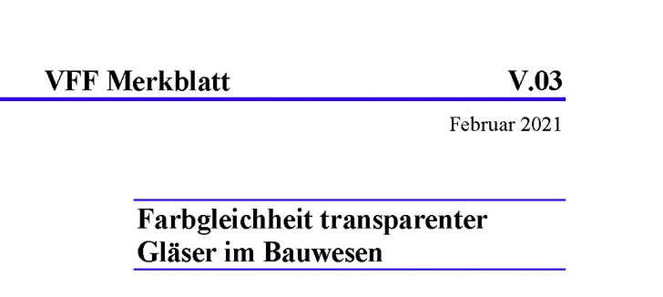 Der Verband Fenster + Fassade (VFF) hat das Merkblatt V.03: 2021-02 „Farbgleichheit transparenter Gläser im Bauwesen“ überarbeitet. „Farbgleichheit“ im Sinne dieses Merkblattes meint die weitestgehende Übereinstimmung unterschiedlicher Flächen hinsichtlich des optischen Farbeindruckes unter Berücksichtigung zulässiger und dem Stand der Technik entsprechender Toleranzen und Beurteilungskriterien. Farbempfindung ist (unter Berücksichtigung der Umgebungsbedingungen) subjektiv beeinflusst und entzieht sich einer allgemein gültigen, einheitlichen Bewertung. Es werden daher die Grundlagen der Farbgleichheit von Glas und deren Beurteilungsmöglichkeiten beschrieben sowie konkrete Hinweise zu den Auswirkungen für Planung, Einbau und Nutzung gegeben. Das sind u. a. die Änderungen:
