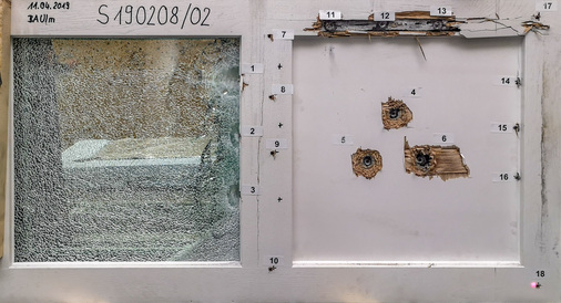 Erfahrungen sammeln konnte Lachmann und sein Team auch bei der Beschussprüfung in Ulm. Hier wurde mit zwei verschiedenen Munitionen (Hartkern + Weichkern) geschossen, welche unterschiedliches Verhaltensweisen bzw. „Eindringwege“ haben. (dm)