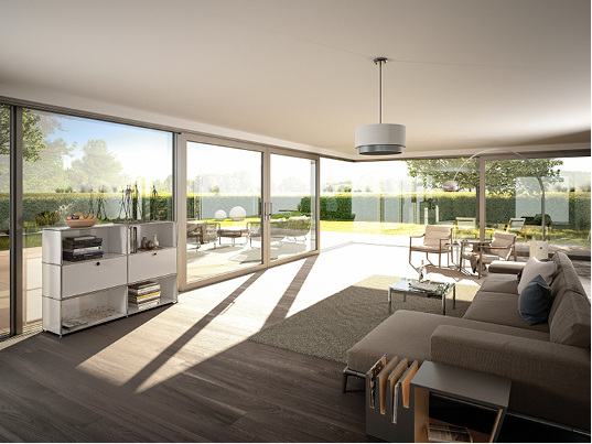 Einen weiteren Beitrag zur Barrierefreiheit leisten selbstöffnende Elemente wie Fenster- oder Türsysteme. Diese können per Knopfdruck, Sensor oder Smartphone-App gesteuert werden, sodass Öffnungs- und Schließvorgänge auch für gehandicapte Personen ohne weiteres ermöglicht werden. Für einen uneingeschränkten Zugang zu Garten oder Terrasse können auch die Hebe-Schiebesysteme wie das System S 77 SL automatisch gesteuert werden. Bei den oftmals großflächigen und damit höhergewichtigen Hebe-Schiebetüren bietet heroal die Möglichkeit, den vollintegrierbaren SF-Antrieb einzusetzen.