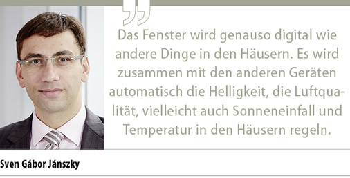 Jánszky – Das Fenster wird genauso digital, wie alle anderen Dinge in den Häusern. Die Experten sprechen von 50 Milliarden vernetzten Geräten im Jahr 2020, bis 2030 kann ich die Zahl gar nicht abschätzen. Was sind diese 50 Milliarden Geräte? Dies sind Spiegel, Tische, Tapeten, Kühlschränke, Uhren, Brillen, ICE-Sitze, Autos … etc. Es wäre ein großes Wunder, wenn das Fenster die einzige Ausnahme wäre. Sicherlich wird sich das Fenster in die zunehmende Automatisierung und Vernetzung der Häuser einpassen. Es wird zusammen mit den anderen Geräten automatisch die Helligkeit, die Luftqualität, vielleicht auch Sonneneinfall und Temperatur in den Häusern regeln.—