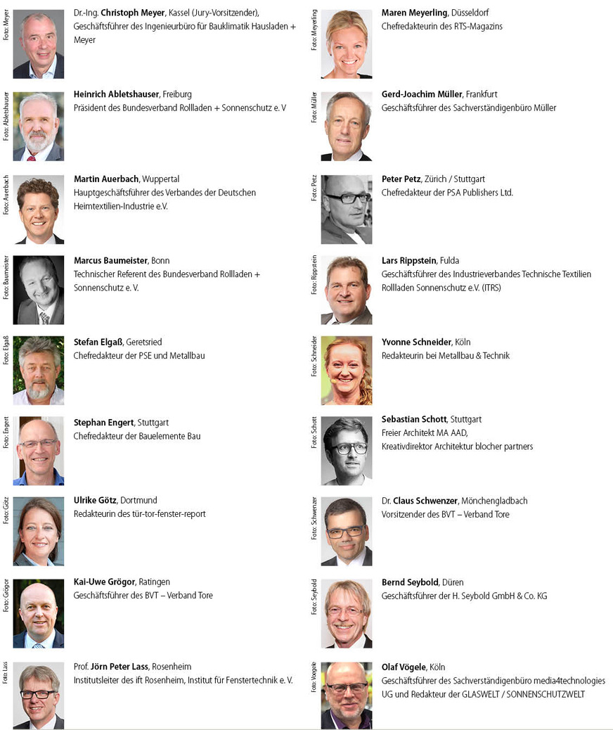 Verbandsvertreter, Fachjournalisten, Architekten und Branchenexperten: Bei der Jury des Innovationspreises sind alle Fachbereiche der R+T vertreten. Mit ihrem umfangreichen Wissen und vielfältigen Erfahrungswerten verfügen die Juroren über die besten Voraussetzungen, um die innovativen Einreichungen der Teilnehmer entsprechend der Bewertungskriterien verstehen und beurteilen zu können.