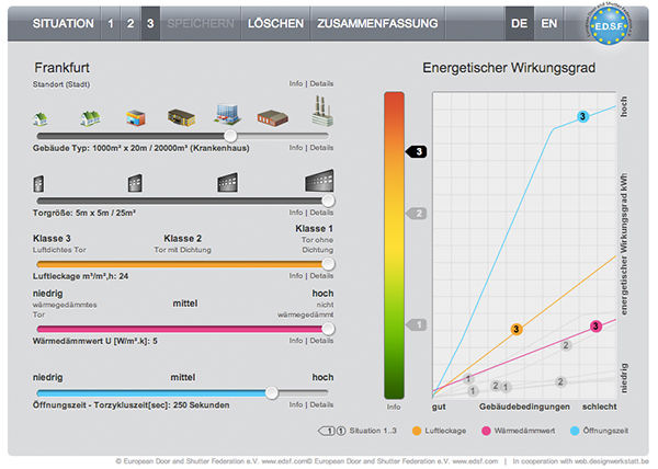 Der durch die Workgroup „WG-Energy and Sustainability“ entwickelte Calculator zeigt letztendlich die Ergebnisse der Studie „Unterschiedliche Torsysteme in Industriegebäuden unter Berücksichtigung energetischer, bauklimatischer und wirtschaftlicher Aspekte“ an der technischen Universität München auf, und verdeutlicht die Einsparpotenziale durch automatisierte Tore. Christian Grabitz zeigte in seinem Vortrag auch auf, dass nicht nur die schnelle automatische Schließung der Tore nach dem Durchfahren wichtig ist, sondern auch die Toröffnung auf das notwendige Minimum bei der Durchfahrt zu beschränken, um den ungewollten Austausch von Luftschichten zu vermeiden. Der Calculator ist unter www.edsf.com/calculator verfügbar.
