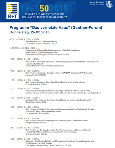Themen rund um “Das vernetze Haus“ will das Gentner Forum nächste Woche Donnerstag auf der R+T in Stuttgart abbilden, und den Besuchern viele interessante Informationen auf Augenhöhe anbieten. Zum spannenden Thema Datensicherheit bei Smart Home konnte der Vorsitzende der “SmartHome Initiative Deutschland e.V." Günther Ohland als Speaker gewonnen werden.