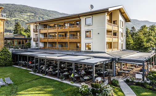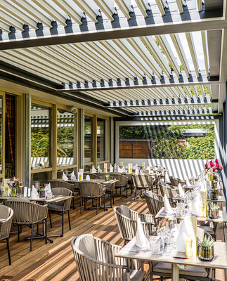 Pölzl – Natürlich möchten die Gäste im Sommer so oft wie möglich auf der Terrasse Abendessen. Früher waren wir aber bei unserer Entscheidung, ob wir im Innen- oder Außenbereich aufdecken, vom Wetterbericht abhängig. So haben wir oft bei schlechter Wettervorhersage den Saal für das Abendessen vorbereitet. Im Sommer ändert sich das Wetter ja manchmal schlagartig. Dann sind die Gäste enttäuscht, wenn es draußen doch schön genug wäre zum Essen. Manchmal haben wir es auch einfach riskiert, dann hat ein kurzer Regenschauer das gesamte Mobiliar durchnässt. Damals haben wir dann über eine Stunde gebraucht, damit wir überhaupt wieder in Betrieb gehen konnten. Das war auch für unsere Mitarbeiter ein großer Stressfaktor. Wenn es jetzt regnet, schließen wir das Lamellendach und die vertikale Beschattung und wenn die Sonne wieder rauskommt, öffnen wir es. So einfach ist das! So können wir auch die Saison im Freien für unsere Gäste verlängern. Die Gäste lieben diesen Komfort.