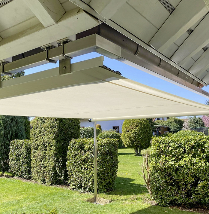 Ob Terrasse, Freisitz, Dachgarten, gastronomische Außenfläche, Balkon, Poolbeschattung oder Innenhofbespannung, durch den modularen Aufbau lässt sich mit den Shade nahezu jede gewünschte Fläche beschatten. Durch ein umfangreiches System- und Zubehörsortiment ist fast jede Herausforderung lösbar.