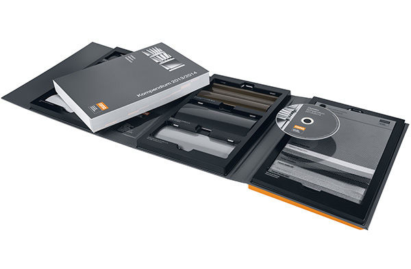 Ergänzt werden sollen diese Angaben mit Originalmustern von Rollladenprofilen, Raffstorelamellen und Textilscreens zur optischen und haptischen Einschätzung der unterschiedlichen Behangarten. Eine beiliegende DVD liefert lt. Hersteller Planungsdetails für verschiedene Einbausituationen, Ausschreibungstexte, eine digitale Version des Druckwerks zur Verwendung auf mobilen Geräten, Montagefilme und technische Zeichnungen.