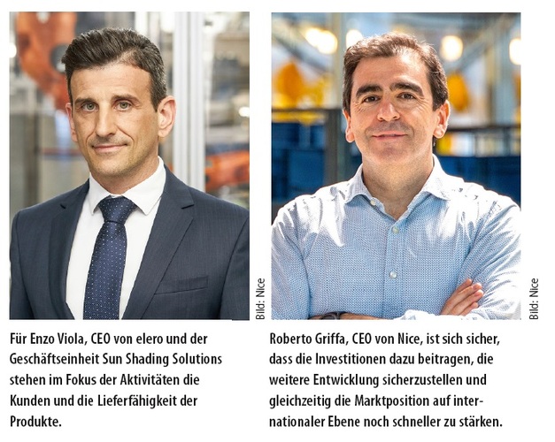 „Wir sind zuversichtlich, dass mit der langjährigen Erfahrung von elero im Bereich Sonnenschutz und der globalen Stärke von Nice unser mittel- und langfristiger Geschäftsplan auf einer guten Grundlage steht. Die geplanten Investitionen sind strategisch besonders bedeutsam: Sie werden dazu beitragen, die weitere Entwicklung sicherzustellen und gleichzeitig unsere Marktposition auf internationaler Ebene noch schneller stärken“, sagt Roberto Griffa, CEO von Nice.