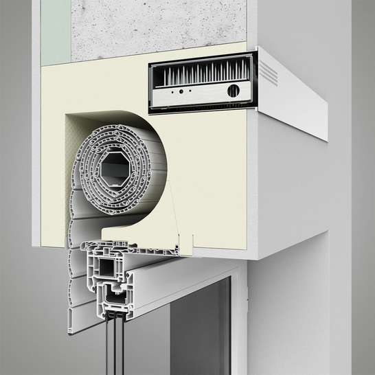 Per Sensorsteuerung oder Knopfdruck soll ein in die Aufsatzkasten-Serie Thermo NB von DuoTherm integriertes Lüftungssystem für ein bedarfsorientiertes Raumklima sorgen. Dank dem Wärmetauscher des VentoTherm-Systems von Schüco soll die einströmende, kalte Außenluft mit verbrauchter Innenraumluft gewechselt und gleichzeitig energiesparend erwärmt werden.