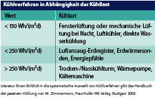 In Deutschland sollte man versuchen auf Kühlgeräte zu verzichten. Bei Wohnnutzung und einfacher Büronutzung stellt dies kein besonderes Problem dar. Bei höheren Kühllasten, können abhängig von der Höhe der Kühllast geeignete technische Kühleinrichtungen berücksichtigt werden. Nicht immer muss eine Kältemaschine eingesetzt werden. Passive Kühlung bei der regenerierbare Wärmesenken genutzt werden, weisen zwar meist höhere Investitionskosten auf, der Einsatz von Kältemaschinen belastet die Nutzer jedoch langfristig stärker durch die Betriebskosten.