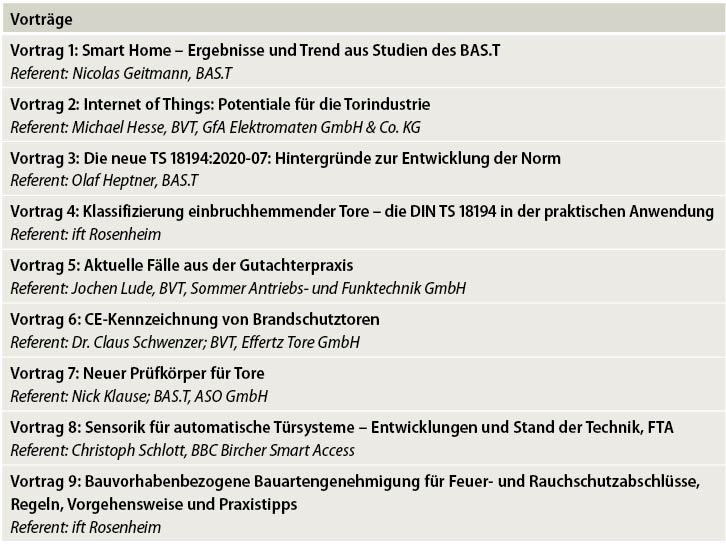 Das Torforum bietet mit 9 Live-Vorträgen und zwei weiteren On-Demand interessante Inhalte für die Besucher. Die Beiträge werden aufgezeichnet und später auf der Plattform der R+T digital zum Streaming bis zur R+T 2022 zur Verfügung gestellt.