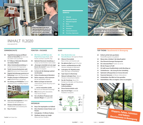Die GLASWELT 11/2020 ist "im Kasten" und spätestens am 11.11.2020 beim Leser zu Hause – mit einem umfangreichen Top-Thema „Bauelemente in Bewegung“. Noch weitere Beispiele gefällig?