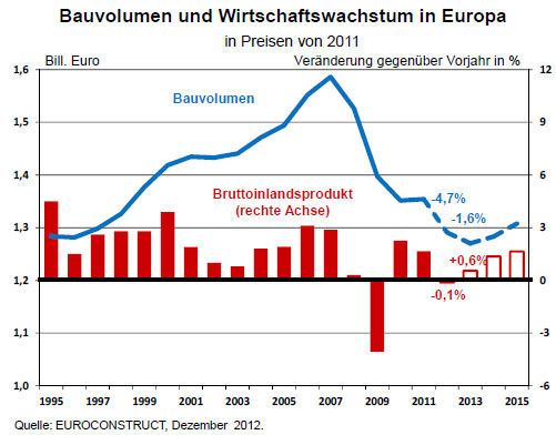 Die Hoffnungen auf eine baldige Erholung der europäischen Bauwirtschaft haben sich zerschlagen. In etlichen der 19 Euroconstruct‐Länder hält die Euro‐Krise das Baugeschehen weiterhin in Atem. Hinzu kommt die anhaltend schwierige Lage der Weltwirtschaft.