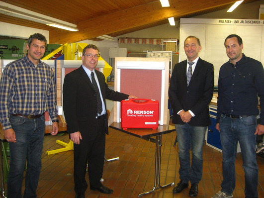 Der belgische Hersteller von Lüftungs- und Sonnenschutzsystemen stelle mit einer Spende für den Fachbereich Rollladen- und Sonnenschutztechnik des Beruflichen Schulzentrum Wiesau Senkrechtmarkisen des Typs Fixscreen zur Verfügung. Damit könne die Ausbildung der künftigen Spezialisten in diesem Bereich noch praxisnäher durchgeführt werden, so Sandro Pruss Bereichsleiter für Textilsonnenschutz bei Renson.