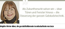 Die Geze GmbH hat im September 2013 ihr 150-jähriges Bestehen mit einer großen Feier gewürdigt. Die GLASWELT befragte zu diesem Anlass die geschäftsführende Gesellschafterin Brigitte Vöster-Alber, die seit 45 Jahren an der Spitze des Unternehmens steht, nach ihren aktuellen Zielen.