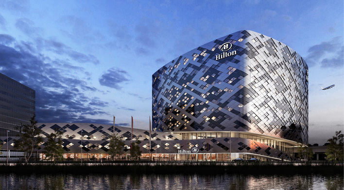 _ Aus der Distanz beeindruckt das wie ein riesiger Diamant erscheinende neue Hilton Hotel in Schiphol, aus der Nähe faszinieren die unterschiedlichen Elemente der Gebäudehülle. Das Architekturbüro Mecanoo, Delft, zeichnete für den Entwurf des Hotels verantwortlich, in dessen rautenförmigen...