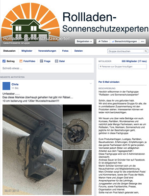 Eine Fachbookgruppe sorgt derzeit für Furore und ist binnen eines Jahres auf über 400 Teilnehmer angewachsen. Betriebsinhaber, Monteure, Auszubildende, Teilnehmer aus der Herstellerindustrie und Sachverständige aus der R+S Branche tummeln sich hier auf einer gemeinsamen Plattform und tauschen ihre Erfahrungen aus.