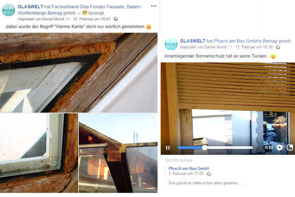 ... wird auf unserem Facebook-Kanal häufiger eines Besseren belehrt. Da werden Isoliergläser gleich ins Fachwerk eingeschäumt oder ein Rollladen wird durch einen Fenstergriff ausgebremst...