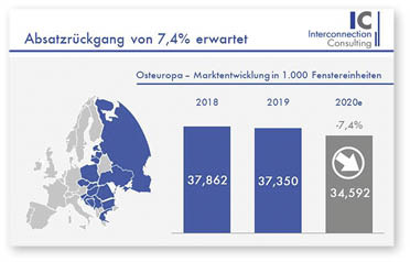 Der Absatz am osteuropäischen Fenstermarkt wird 2020 im Vergleich zum Vorjahr um 7,4% zurückgehen. Allein in diesem Jahr erwartet eine neue Studie von Interconnection Consulting einen Rückgang des gesamten Fenstermarktes um 270 Mio. Euro in Osteuropa. Der Absturz der Branche, verursacht durch die COVID-19-Krise, wird auch 2021 ungebremst fortgesetzt.