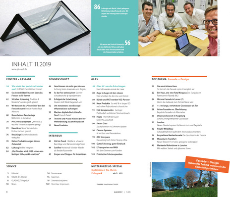 Das Novemberheft der GLASWELT ist wieder prall gefüllt mit vielen interessanten Beiträgen, Interviews und Produkthinweisen. Wir thematisieren in unserem Top-Thema das wirtschaftlich interessante Umfeld der Bau- und Wohnungswirtschaft. Dazu haben wir Helmut Hilzinger und Jörg Holzgrefe (Weru) befragt, mit welchen Argumenten sie bei der Wohnungswirtschaft punkten.