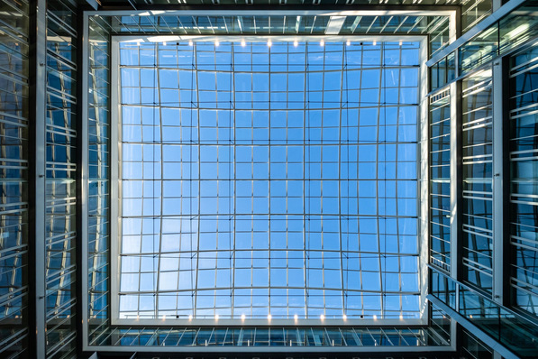 Das imposante Bürogebäude „Newton“ der TÜV Süd Gruppe im München bietet viele Raum für Kreativität. Ein optisches Highlight des Gebäudes ist das 950 m² große Glasdach von Lamilux, das die komplette Eingangshalle überdacht und für viel Tageslicht im Innenraum sorgt. Hier Details zur Umsetzung.