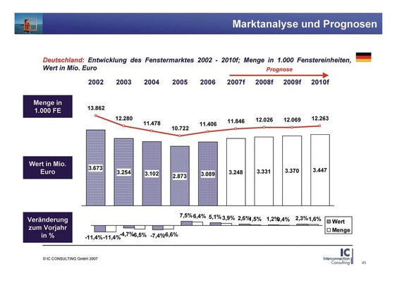 Lange erhofft, aber kaum mehr erwartet hat Deutschlands Fenstermarkt im letzten Jahr überraschend ein kräftiges Umsatzplus erlebt. Laut der neuesten Studie der Interconnection Consulting Group konnte eine Absatzsteigerung von 3,9 Prozent erzielt werden.