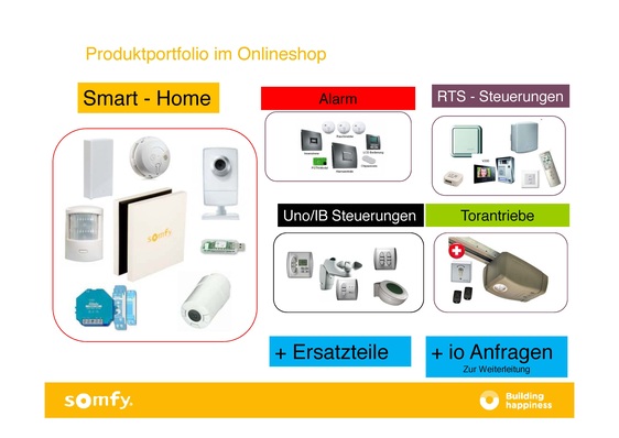 76 % der deutschen Bevölkerung sind täglich online, und nach Suchmaschinen (91%) und Emails (87%) liegt Onlineshopping bei einer aktuellen Befragung mit über 100.000 Personen mit 73% bereits an dritter Stelle der Nutzungsaktivitäten. Dieser neuen Herausforderung stellt sich Somfy mit seiner zusätzlichen Ausrichtung auf Privatkunden und eröffnet dazu im Frühjahr 2016 einen offiziellen Online-Shop.