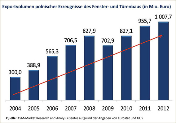 Im letzten Jahr wurden so viele polnische Fenster- und Türen verkauft und exportiert wie noch nie. Zum ersten Mal in der Geschichte überschritt der Exportwert 1 Milliarde Euro, was ein Wachstum von 5,4% im Vergleich zu 2011 ergibt. Die polnischen Marktforscher ASM-Market sprechen bereits davon...
