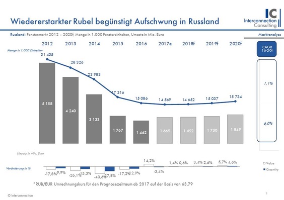 Im Zuge der russischen Wirtschaftskrise rücken die umliegenden Länder des Riesenreichs auch am Fenstermarkt stärker in den Fokus. Zwar konnten die Staaten des Baltikums, Osteuropas, des Kaukasus und Zentralasiens im letzten Jahr 12,2 Mio. Fenster absetzen, mussten jedoch dabei einen Rückgang von 10,0% gegenüber dem Vorjahr hinnehmen. Mit 70,9% gibt es eine starke Präferenz für PVC-Fenster in den untersuchten Märkten, die sich sehr unterschiedlich entwickeln, wie eine Studie von Interconnection Consulting zeigt.