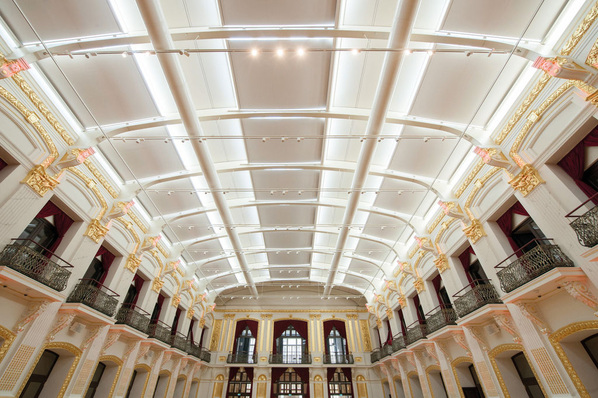 Die Wiener Sofiensäle blicken auf eine über 175-jährige, bewegte Geschichte zurück. Nach einem Brand und mehr als einem Jahrzehnt im Dornröschenschlaf wurden sie wieder zum Leben erweckt und erstrahlen nun in neuem Glanz. In der Beletage im großen Festsaal leisten Verdunklungsmarkisen einen Beitrag zur multifunktionalen Nutzbarkeit.