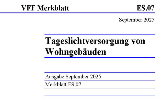 Tageslicht richtig planen wird immer wichtiger – der VFF gibt mit seinem neuen Merkblatt ES.07 konkrete Hilfestellung. Architekten und Bauherren finden darin alles von gesetzlichen Vorgaben bis zu Empfehlungen für Fenstergrößen und Sonnenschutzsysteme.