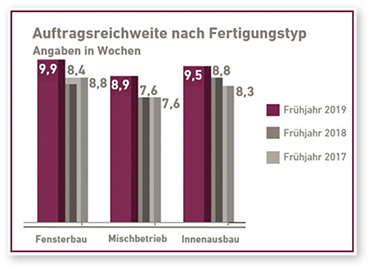 Die Auftragsreichweiten der Innenausbau-, der Fensterbaubetriebe und der Mischbetriebe in Bayern haben sich deutlich verlängert. Aktuell haben Fensterbauer einen Auftragshorizont von 9,7 Wochen.