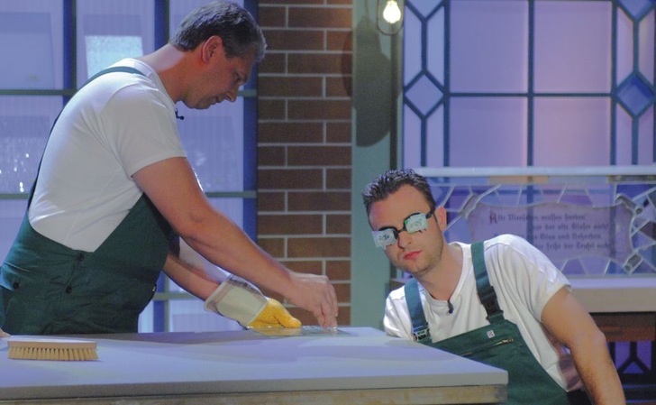 In der 170. „Wetten, dass..?“ Sendung, die das ZDF Anfang Oktober live aus Basel übertragen hat, drehte sich eine Wette ganz ums Glas: Cengiz Itik (27), Glasermeister bei der Antoni Glas GmbH in Düsseldorf, wettete, dass er Sorte und Stärke von Glasscheiben am Schnitt- und Bruchgeräusch erkennt. Moderator Thomas Gottschalk wählte dazu willkürlich drei Scheiben aus einer Gesamtanzahl von 50 aus. Doch bevor Itiks Kollege Ralf Köhnen die Scheiben an der Tischkante brechen konnte, musste er diese zunächst mit einem Glasschneider bearbeiten. Denn zum Zerteilen von Glas wird die Glasoberfläche im ersten Bearbeitungsschritt angeritzt. Dabei entstehen Spannungen, die in einem zweiten Schritt durch kontrolliertes Verbiegen des Glases zum Bruch führen. Zum Anritzen benutzte Köhnen bei „Wetten, dass..?“ den bekanntesten und meistverkauften Glasschneider der Welt: den Silberschnitt 100.0. Das Werkzeug, das in seiner Ursprungsversion bereits 1933 auf den Markt kam und bis heute millionenfach in alle Welt verkauft wurde, zählt zu den vielfältigen Qualitätsprodukten, die Bohle in Haan produziert. „Um die Wette gewinnen zu können, war es besonders wichtig, einen möglichst sauberen und gleichmäßigen Bruch zu erzielen. Nur so konnte ich die Sorten und Dicken zuverlässig am Brechgeräusch erkennen“, erklärt Cengiz Itik bei einem Besuch des Bohle Hauptsitzes in Haan. „Und um ganz sicher zu gehen, haben wir uns natürlich auf das Qualitätswerkzeug von Bohle verlassen, das wir auch bei unserer täglichen Arbeit einsetzen“, erzählt Cengiz Itik weiter. Eine gute Entscheidung, denn der Düsseldorfer und sein Kollege haben die Wette gewonnen. Fehlerfrei erkannte der Glasermeister 8 mm starkes Verbundsicherheitsglas, Wabenglas und Kathedralglas.
