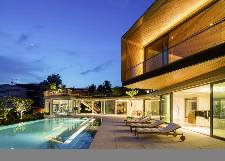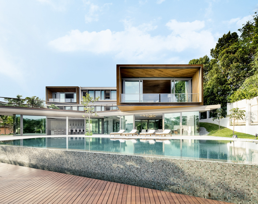 Das „House X“ ist ein privates Wohnhaus in Singapur, bei dem die Architektur ein Wechselspiel zwischen offen und geschlossen zeigt. Zur Straßen- und Eingangsseite erscheint das Haus geheimnisvoll und verschlossen, während es sich zum Garten hin öffnet.